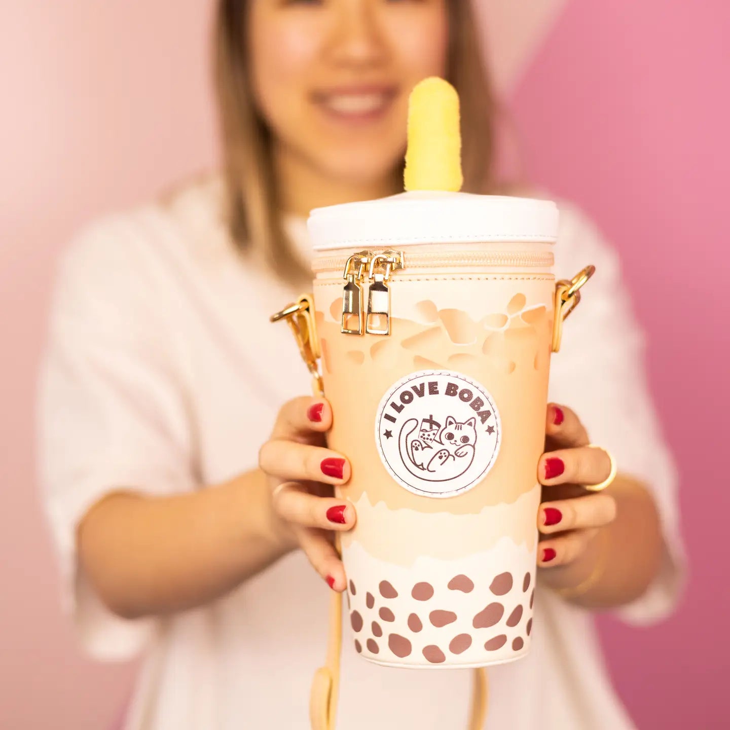 Yummy! Your new favorite novelty purse is here! Features a zipper closure, PU leather exterior, and an adjustable strap to accompany you on your boba runs. Also makes a super unique gift!