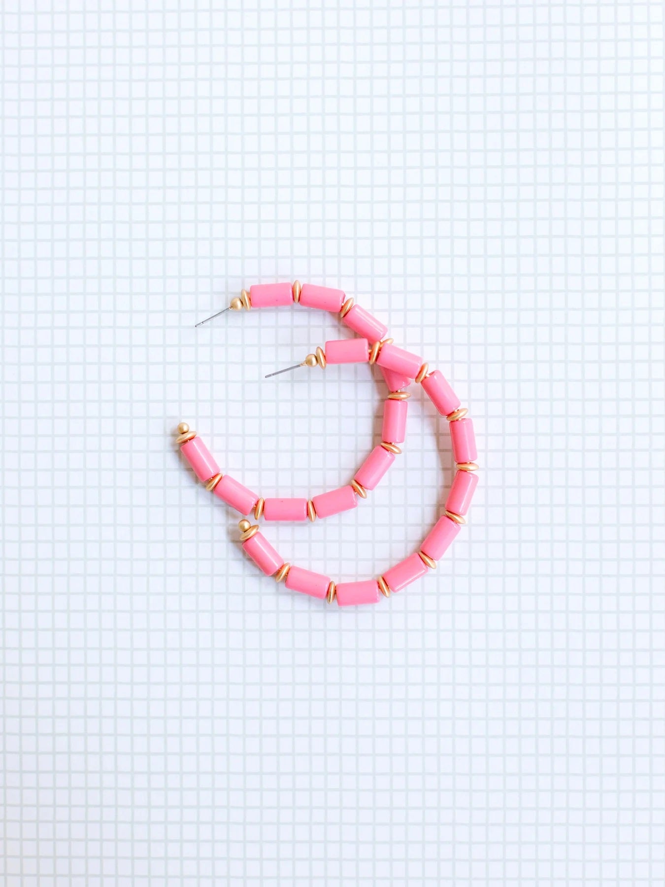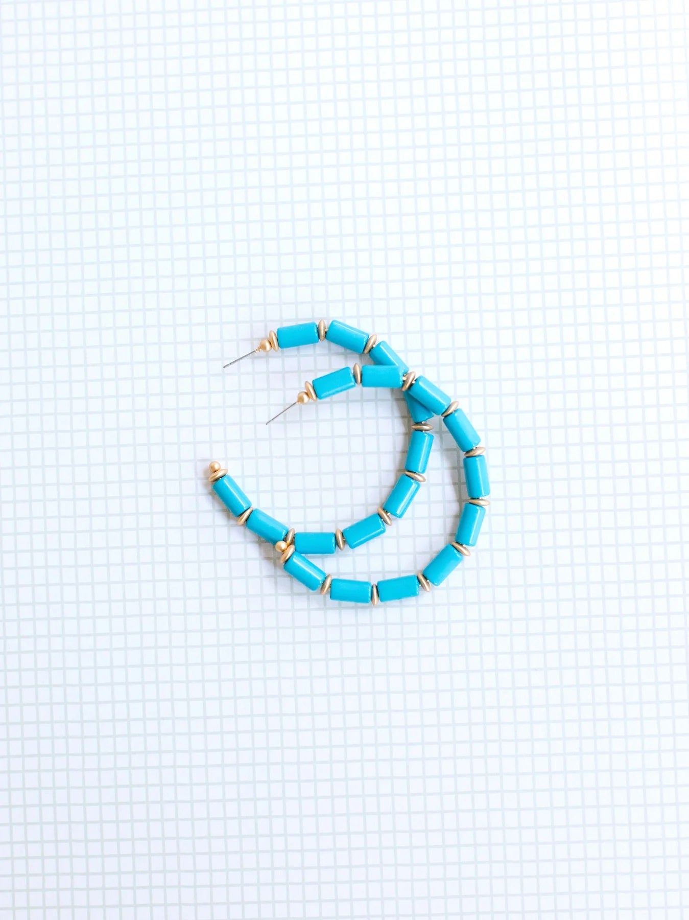 Part of the colorful collection, Cara Earrings feature beautiful colors with gold accents. Making them perfect statement hoops.