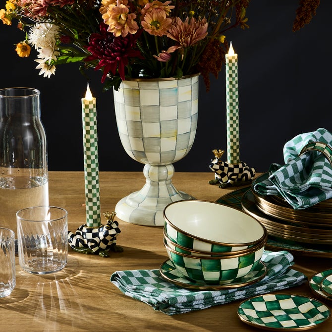 Style a unique table centerpiece with the Frog Prince Candle Holder. Hand-painted in Courtly Check accents and finished with gold leaf. Presented in a box for easy gifting.