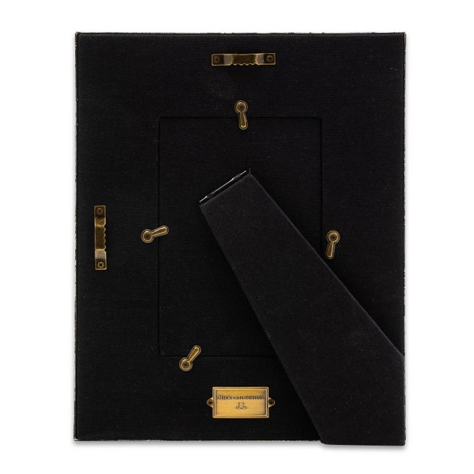 The picture-perfect Mocha Check 4" x 5" Frame features hand-painted Mocha Checks on a steel underbody and is backed with linen with a brass logo plate. Its elegant design makes it a stunning way to display your favorite photos or cherished memories, adding a touch of warmth and charm to any room.
