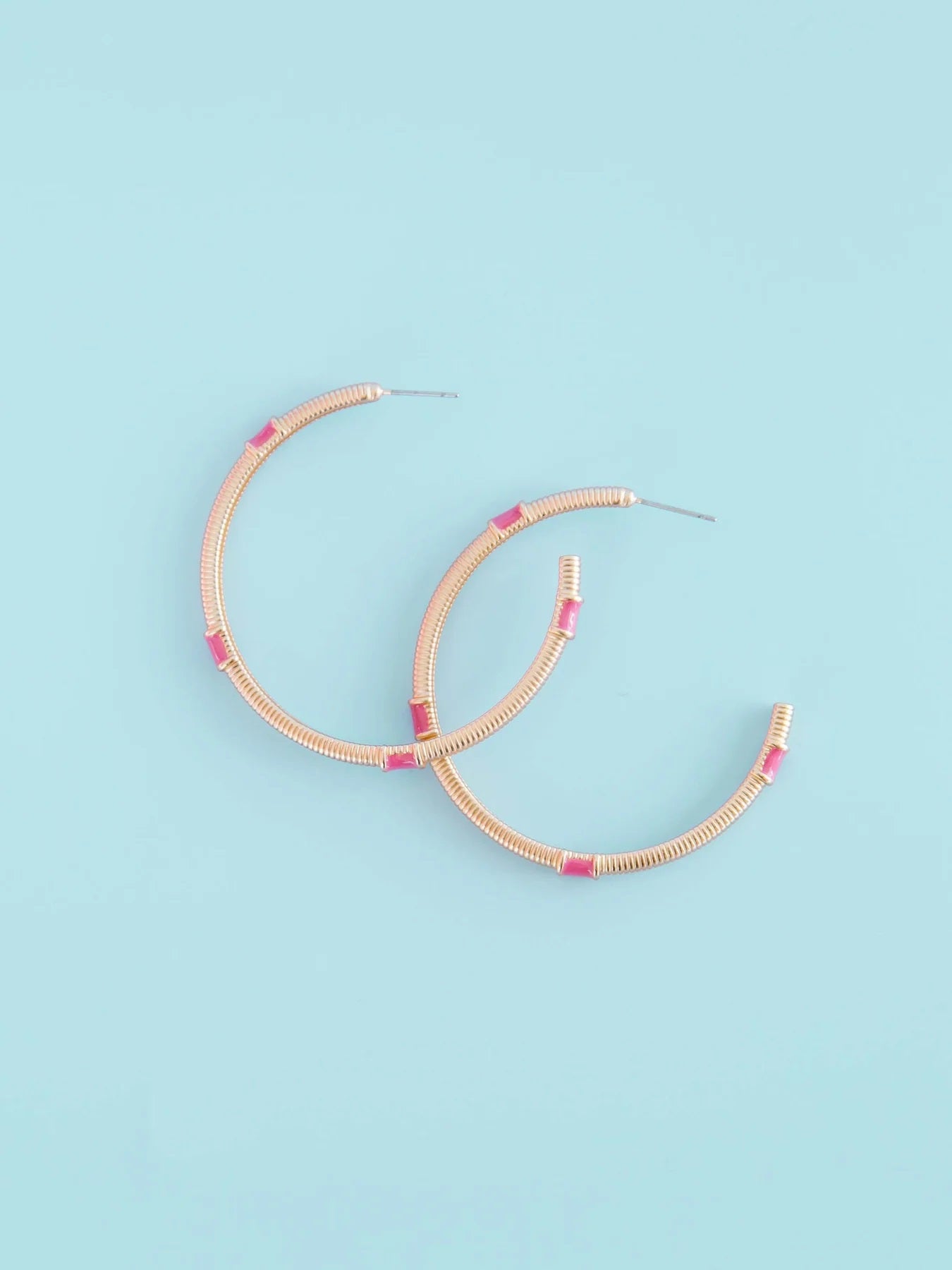 • Brass plated earrings, matte gold hoops with enamel accents