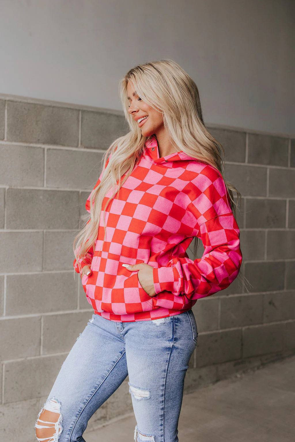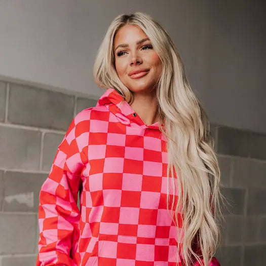 Elevate your style with our new University Hoodie - Love Language Red Check!  Perfectly blending comfort with a touch of passion, this hoodie speaks love in every stitch!